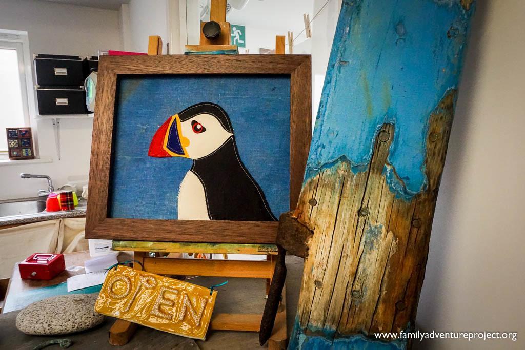 Art doesn’t make itself and the artists spend much more time at the workbench than at the tide line. Also, Oriel is more fine art than beach art. An expert in fused glass, her best selling pieces are splash dishes that look like they’ve just come straight from the tide line, pebble coasters made out of glass and fused glass sea horses. For her workshops, she teaches kids the art of tiffany glass and helps them make roundels. For us she opens her kiln to show some freshly fused creations.